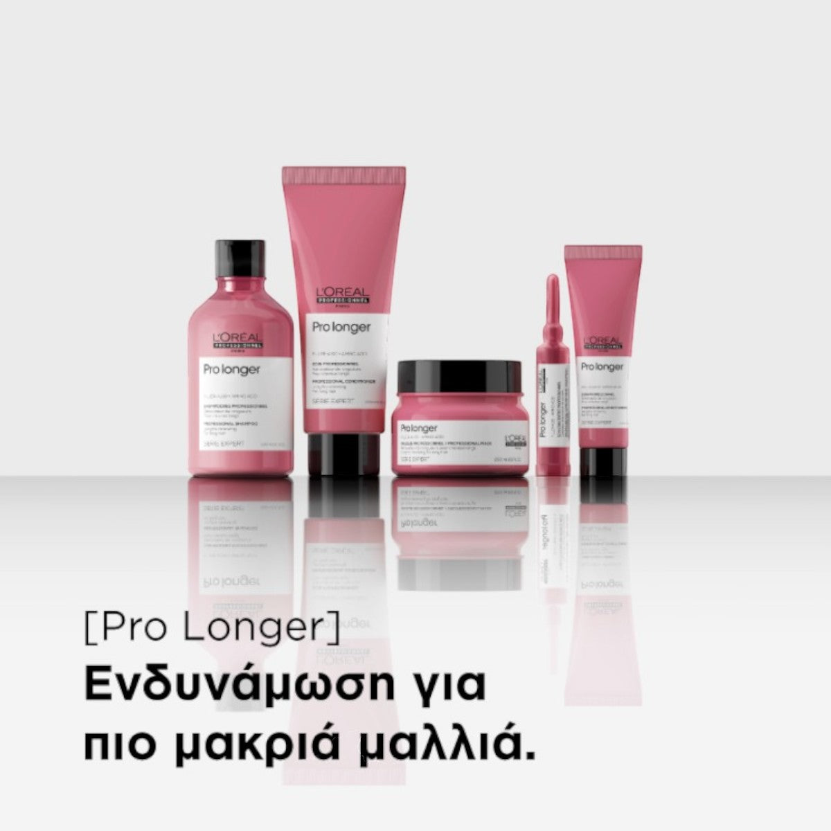 1. Η πρώτη επιλογή είναι φυσικά η Pro Longer η οποία είναι σχεδιασμένη για μακριά μαλλιά που έχουν ανάγκη ενίσχυσης στα μήκη και τις άκρες. Επανορθώνει τα μήκη και γεμίζει τις άκρες των μαλλιών από την 1η εφαρμογή.