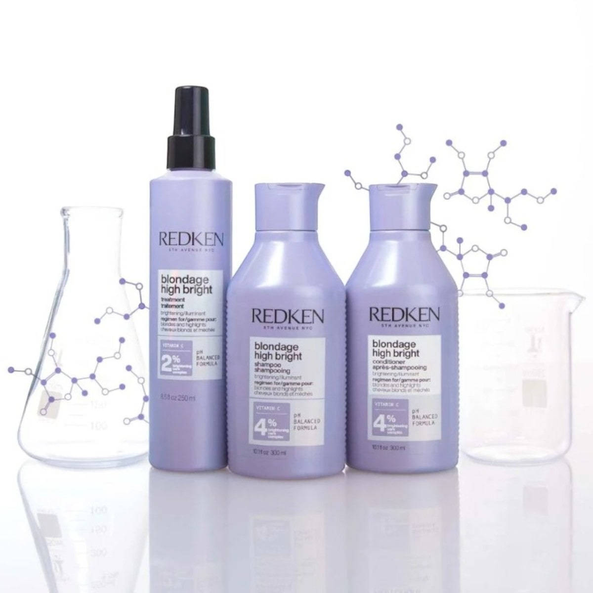 Ξεκινήστε με την περιποίηση προετοιμασίας Blondage High Bright Treatment, εφαρμόστε σε βρεγμένα μαλλιά, χτενίστε και αφήστε το για 5-10 λεπτά, συνεχίστε με το Blondage High Bright Shampoo, ένα σαμπουάν με απαλό καθαρισμό κατάλληλο για ξανθά μαλλιά που χάνουν την φωτεινότητά τους μετά από υπηρεσίες βαφής και ξανοίγματος. Εμπλουτισμένο με βιταμίνη C στοχεύει στην απομάκρυνση των καταλοίπων, ενώ παράλληλα φωτίζει τα θαμπά, βαμμένα μαλλιά.